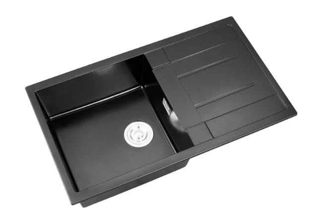 OEM 사각형 검정 석영 세라믹 주방 싱크는 주방용 복합 그라니트 하부설치 싱크입니다. 이 제품은 긁힘과 얼룩에 강한 석영 복합 재질로 이루어져 있으며 깔끔한 검정 마감이 특징입니다.